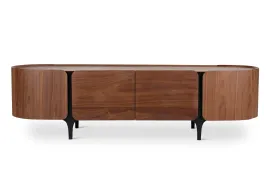 Les buffets et consoles combinent, quant à eux, fonctionnalité et design raffiné. Le buffet Esmay et la console Amandine de Castle Line, en placage noyer, apportent à la salle à manger une touche chaleureuse et sophistiquée. Leur teinte profonde et élégante met en valeur l’espace tout en offrant de généreux volumes de rangement.
