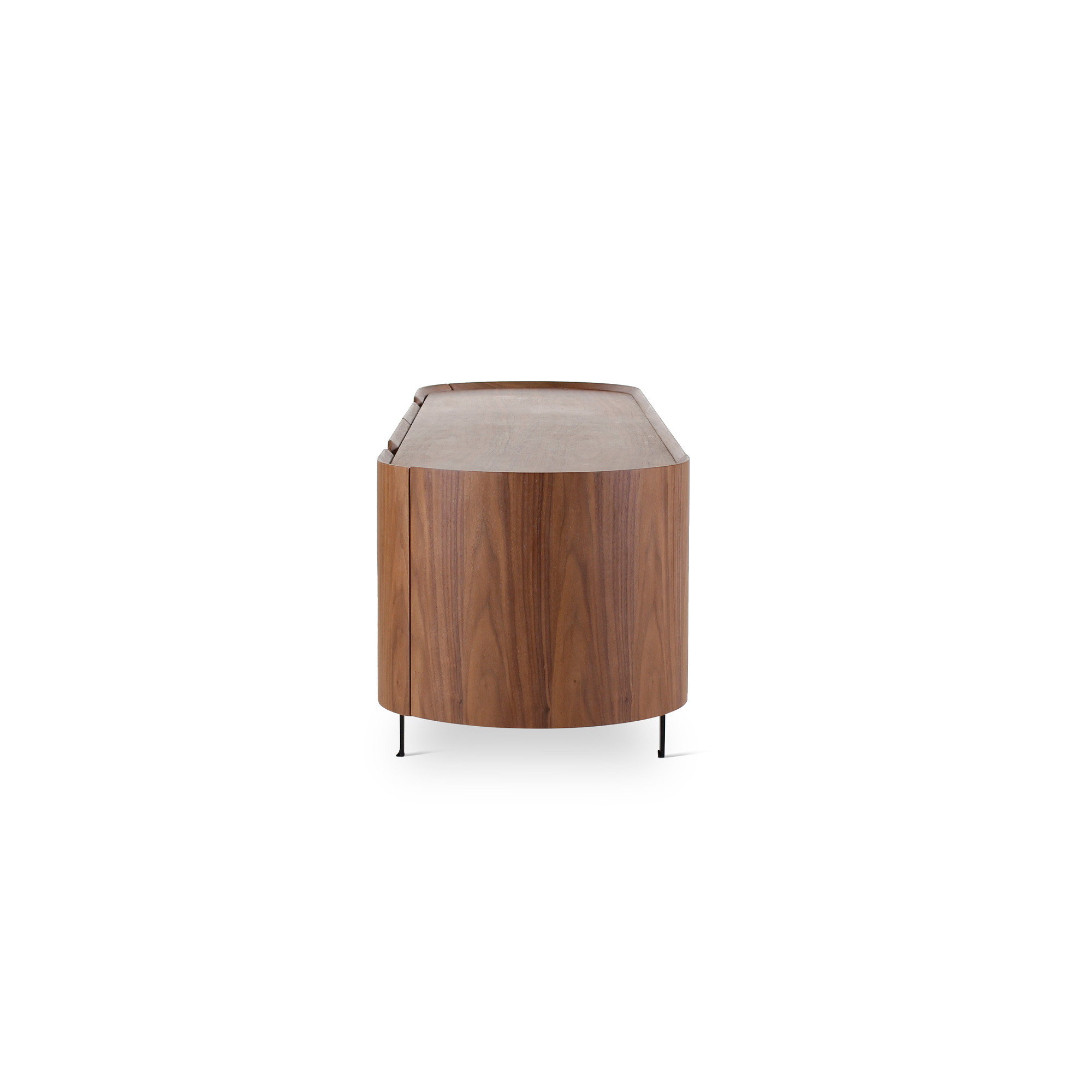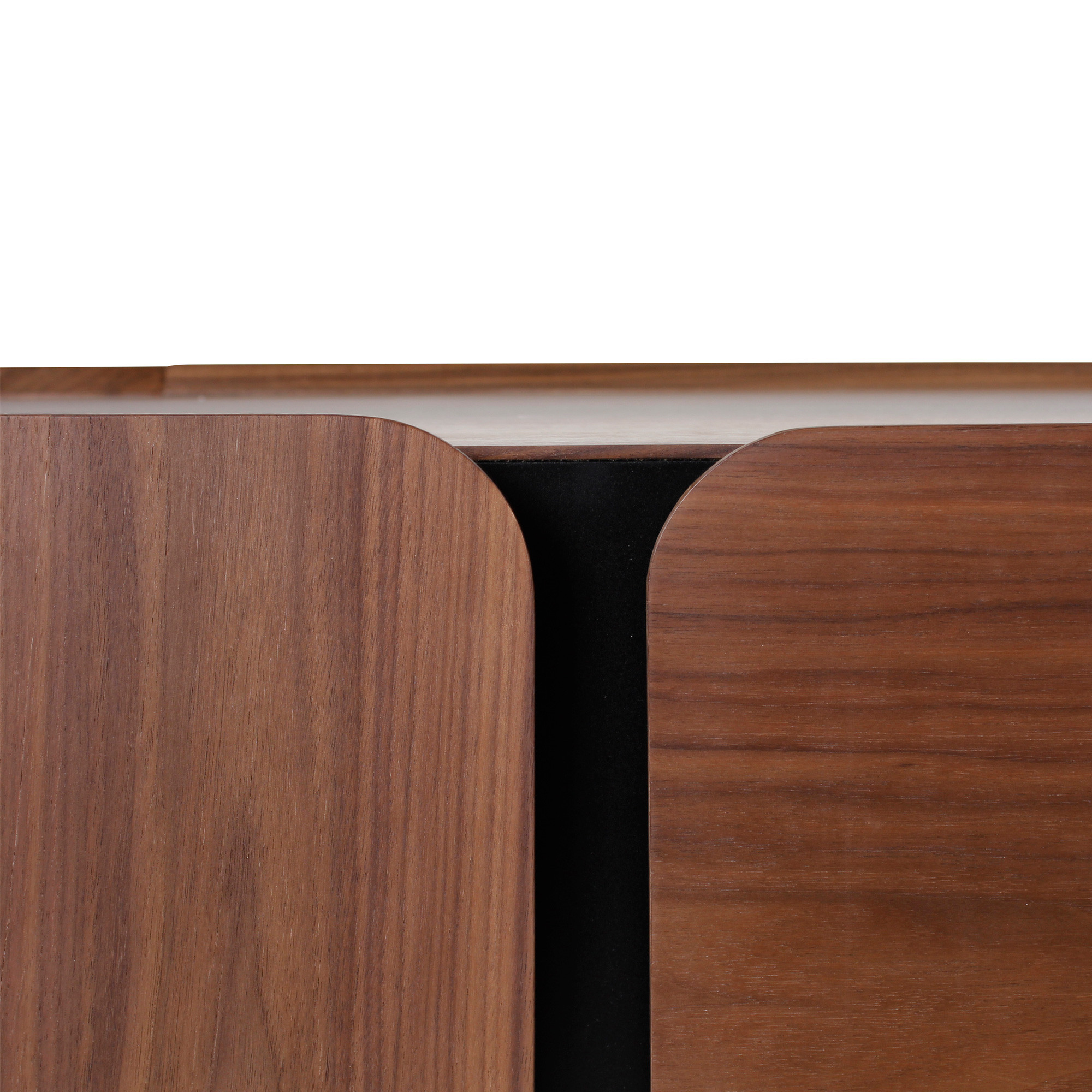 Canapé d'angle SITS en tissu chenille Edda coloris Teddy Brown avec pieds bois et tablettes - Vue latérale I Axodeco.fr
