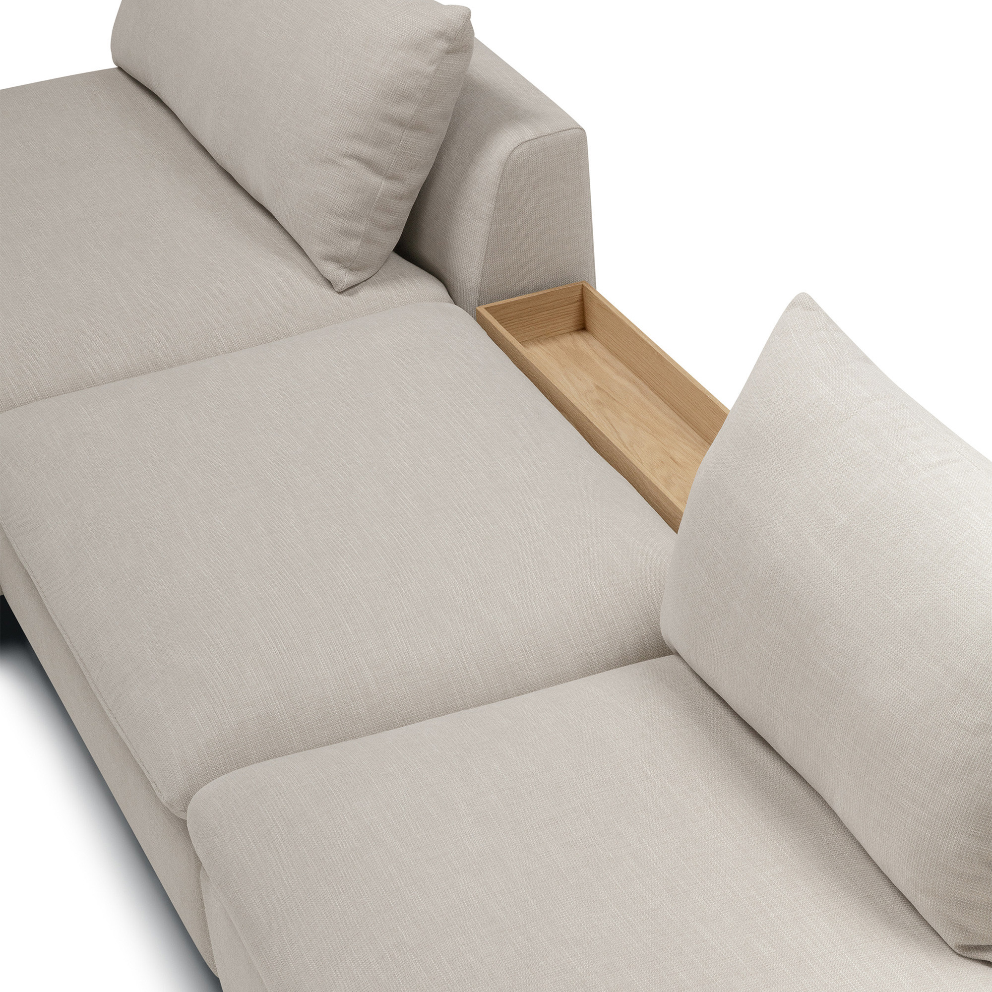 Pour ajouter une touche de style scandinave supplémentaire, optez pour le charmant plateau latéral en bois amovible.