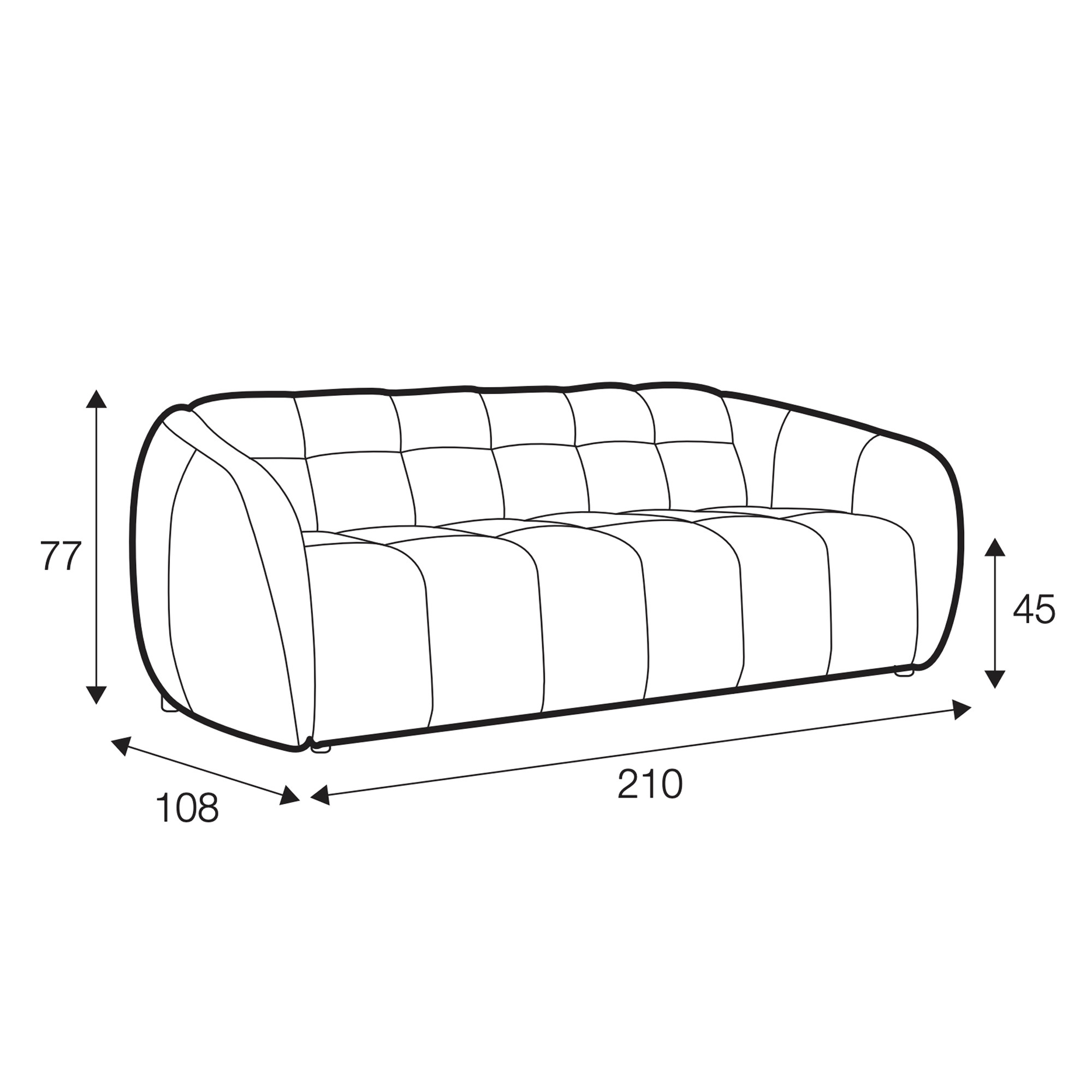 Ce canapé droit matelassé se distingue par ses surpiqûres élégantes et ses lignes équilibrées, qui lui confèrent une silhouette à la fois moderne et accueillante. Le canapé Cube est conçu pour offrir un confort durable, grâce à ses coussins généreux et sa large profondeur d’assise de 77 cm, idéale pour se détendre au quotidien.