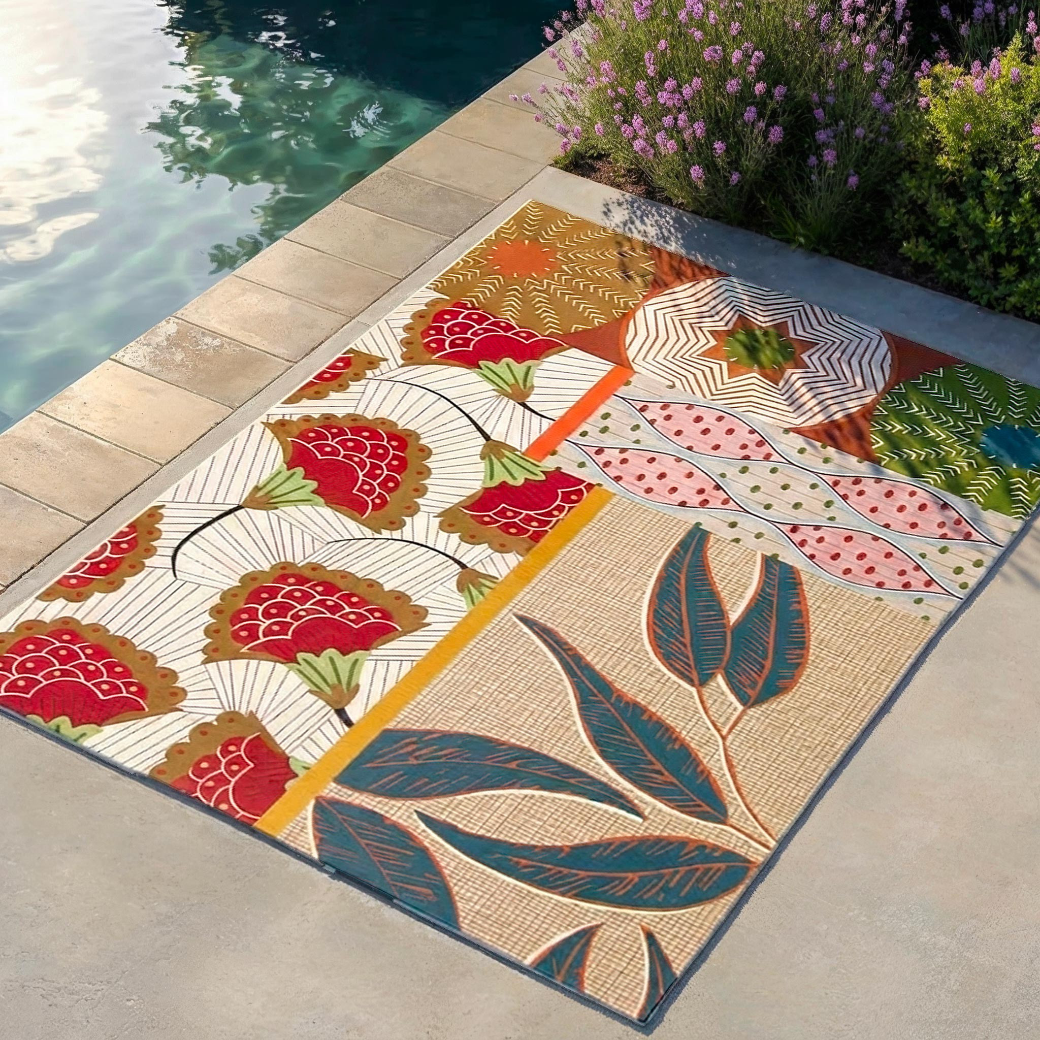 Disponible en trois tailles, ce tapis tendance s'adapte à tous les espaces, grands ou petits. Sur votre terrasse, au bord de la piscine, sur votre balcon ou dans votre salon, ce tapis design offre une polyvalence incomparable pour sublimer votre espace intérieur ou extérieur avec style.