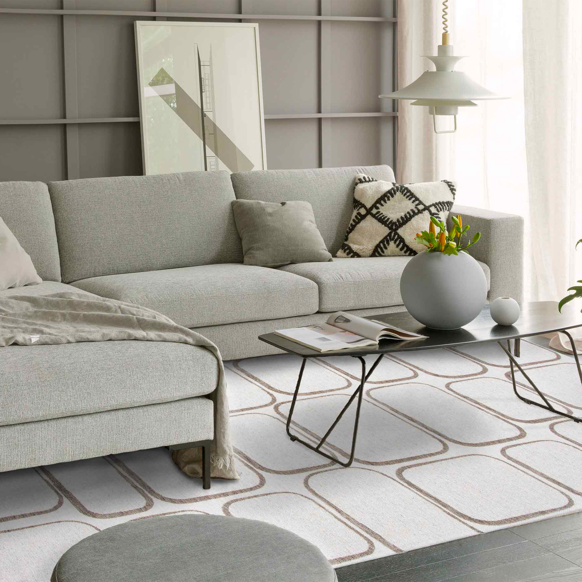 Avec ses subtils motifs arrondis, le tapis intérieur tendance Retba de chez Idaho éditions apporte douceur visuelle et élégance contemporaine à votre décoration. Ses formes organiques, répétées sur un fond écru, composent une géométrie apaisante qui structure l’espace avec légèreté tout en offrant un halo de raffinement. Ce design simple mais sophistiqué séduit par sa présence discrète, idéale pour sublimer un intérieur moderne et épuré.