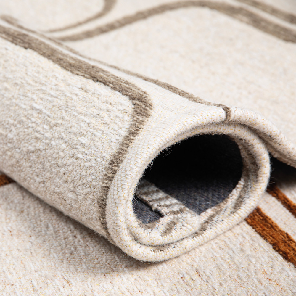 D’un toucher agréable et d’une texture légère, son tissage machine combine plusieurs matières soigneusement choisies : 34 % polyester, 33 % laine, 20 % chenille acrylique et 13 % coton. Cette composition confère au tapis Retba souplesse, confort et résistance, tout en conservant un aspect flatweave élégant et raffiné pour un rendu harmonieux et durable.